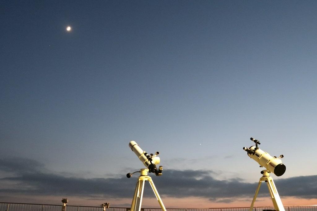 夜景ツアー後は山頂広場にて星座早見盤の説明後、天体望遠鏡や双眼鏡を使用して、360°大パノラマの天体観測をお楽しみいただきます。