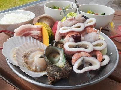 ●ランチはレストランエナで獲れたての新鮮な魚介類を味わえるシーフードバーベキュー