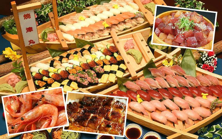 ★魚の本場「焼津」で寿司・甘海老・うなぎひつまぶしなど豪華7大食べ放題(50分間)!