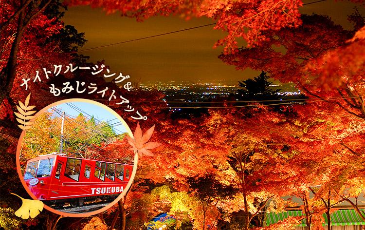 深紅の山を駆け抜ける筑波山ライトアップ!紅葉ケーブルカーでナイトクルージングと特選霜降牛入りハンバーグコース