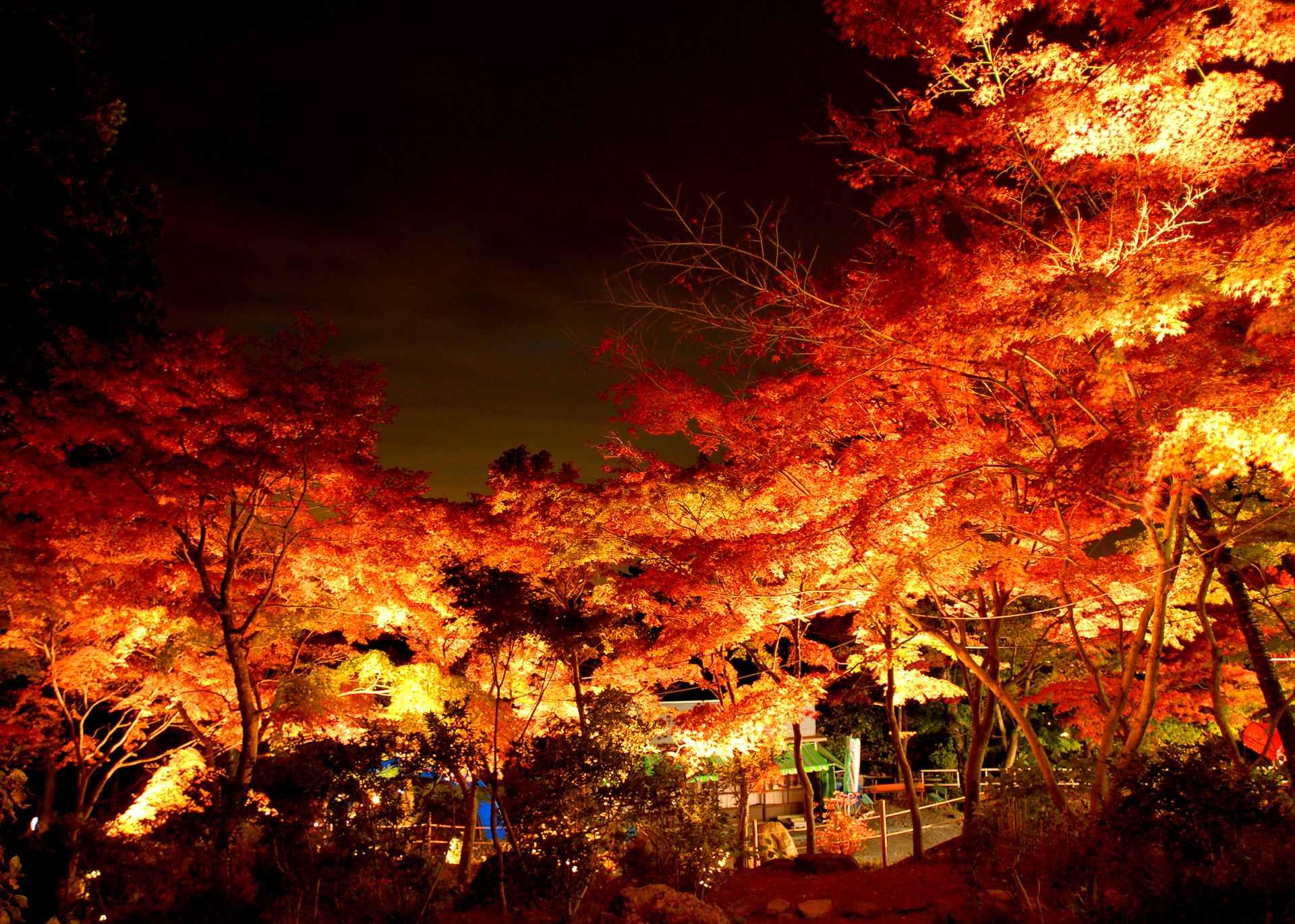 ライトアップされた紅葉の間をケーブルカーで駆け抜けます!間近での紅葉観賞は圧巻!山頂からは関東平野を一望する「日本夜景遺産」に認定の素晴らしい夜景もお楽しみ♪【例年の紅葉見頃】11月上旬~12月上旬