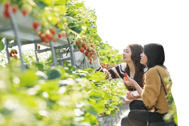 高設栽培により、泥などの汚れからも守り、立ったまま気軽にいちご狩りを楽しんでいただけます。