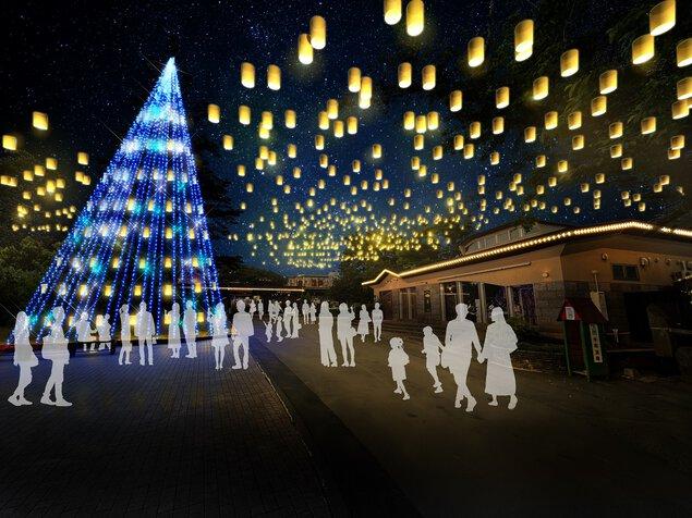 ブルーのイルミネーションとオレンジのランタンが彩るスタイリッシュなツリーが登場。閃光と揺らぐ光による斬新な演出はこれから始まる光の世界の期待感を盛りあげます。