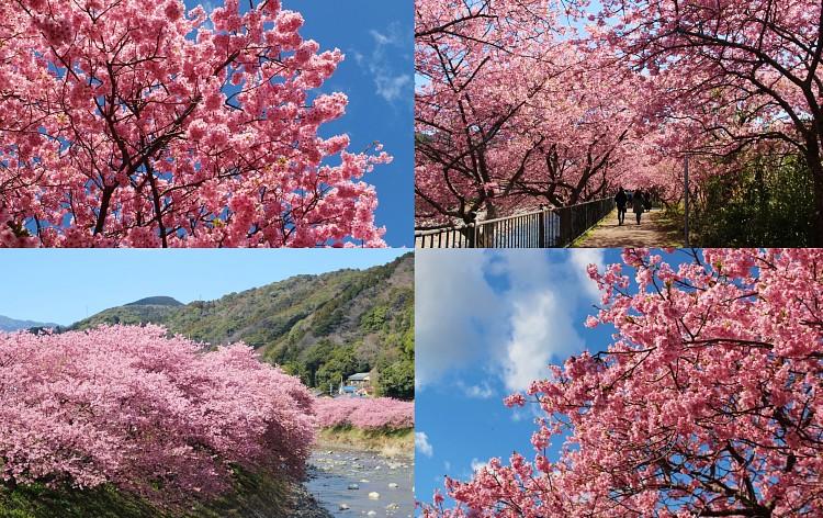 続いては、河津川沿いに約3キロに渡って桜並木が続く「河津桜」を観賞!