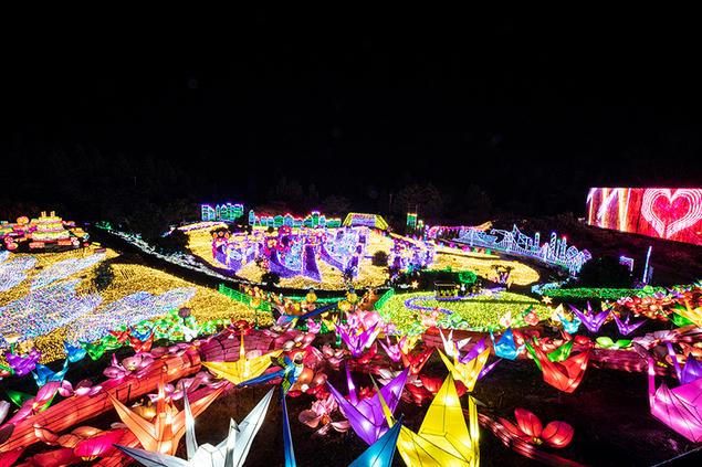 イルミネーションの上を歩ける「ウォークオンザイルミ」エリアが新登場。多数設置された豪華絢爛なランタンゲートは、他にはない幻想的な空間だ。さらに、実物大の動く恐竜たちが出現する「ディノエイジカート」「ディノエイジウォーク」をはじめ、ライトアップされた「メリーゴーランド」やイルミネーションの上を自ら光りながら滑空する「ジップライン~流星RYUSEI~」などのナイトアトラクションが充実。幅60メートルの超大型ビジョン「グランビジョンショー」や、音楽に合わせて光が踊りだす「光と音のショー」などの3 大ショーも見逃せない。