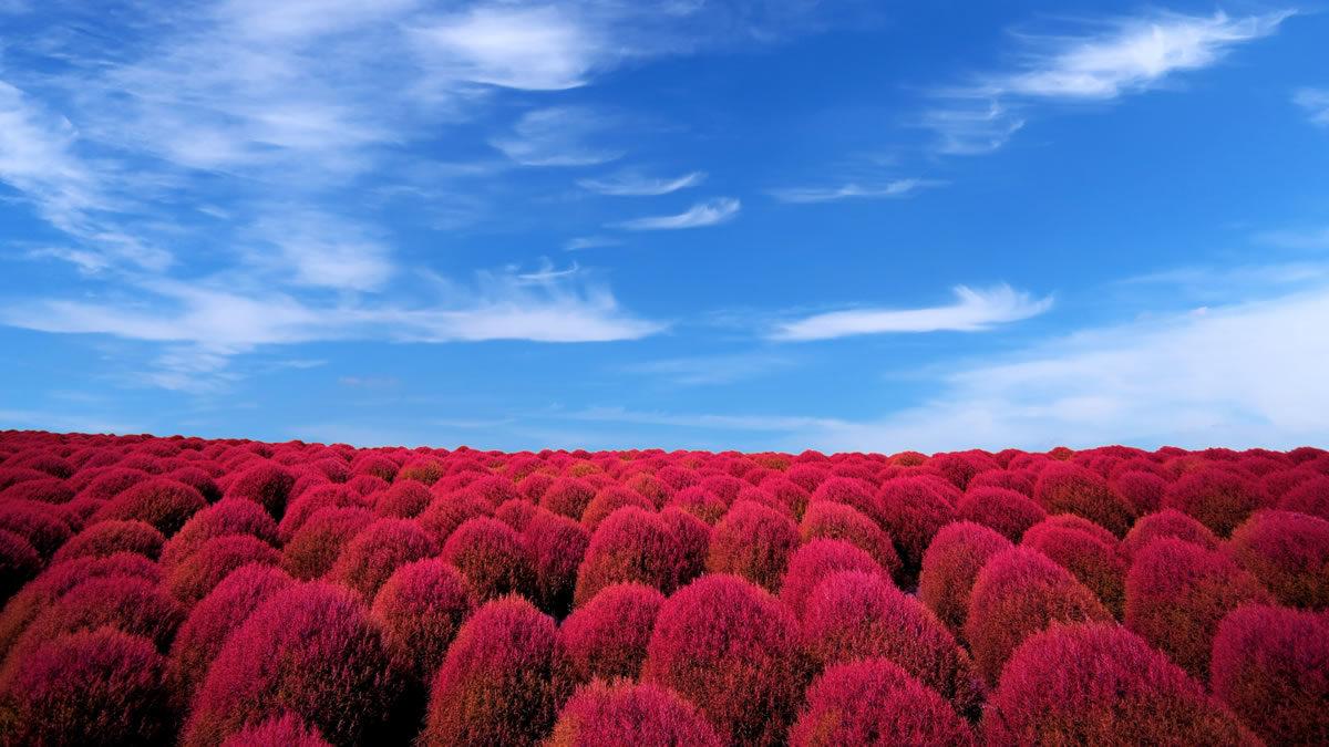 ●「国営ひたち海浜公園」のもこもこで真っ赤なコキア鑑賞!<見頃:10月中旬頃>