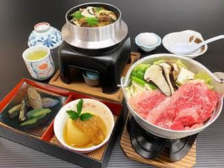 「贅沢!松茸釜めしと日本3大和牛 近江牛の松茸入りすき焼き鍋御膳」
