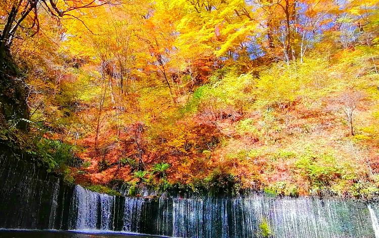 ●水しぶきと紅葉のコントラストが美しい!マイナスイオンたっぷりの「白糸の滝」へ!
