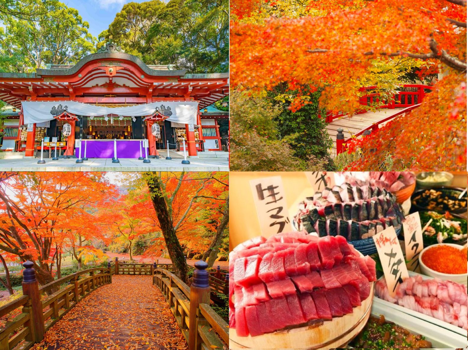小田原港直送!約30種類の新鮮お刺身食べ放題&來宮神社で縁結びパワーをチャージ♪ 熱海商店街散策と紅葉が彩る『熱海梅園もみじまつり』巡り