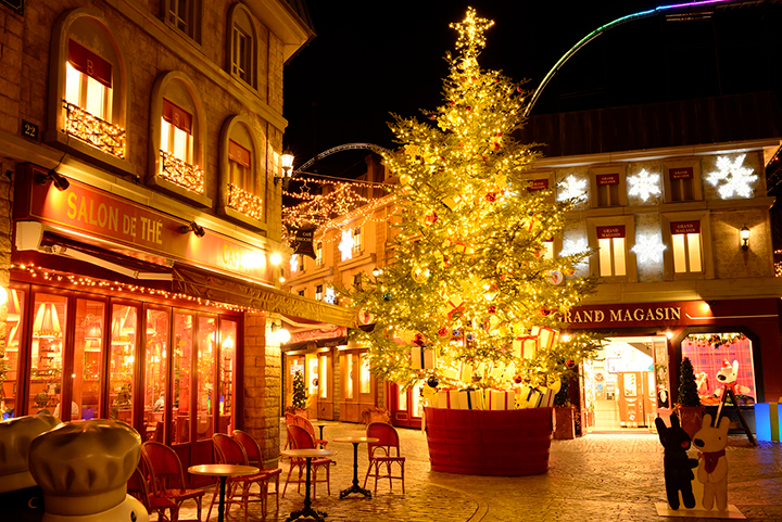 リサとガスパール タウンでは、エッフェル塔や噴水広場など絵本の舞台となるパリの街並みが幻想的にライトアップ。音楽と共に色が変化する高さ約8mの「トワトモツリー」がロマンチックに輝く他、冬ならではのきらめくパリの街並みが楽しめる。また園内では、冬限定のスイーツなども登場し、この時期だけの楽しみが盛りだくさんのクリスマスイベントが開催。