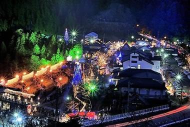 宮ヶ瀬湖のほとりに高さ約30メートルのジャンボクリスマスツリーが登場、自生のもみの木が約1万個の電球で飾られます。大噴水、水の郷商店街もライトアップされ、それぞれ幻想的な光に包まれて壮大な光のイルミネーションが楽しめます。昨年度に引き続き、水の郷大吊り橋(長さ315メートル)へのイルミネーションも実施され、夜間通行も実施します。