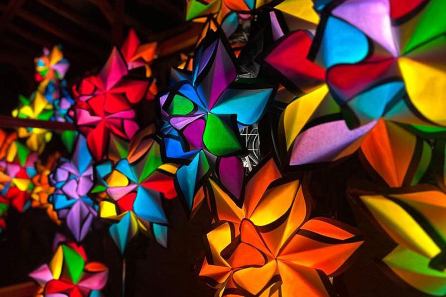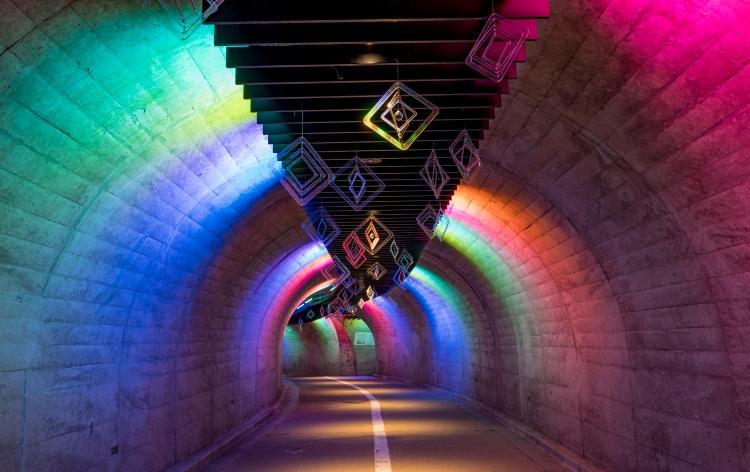 花型のLEDライトで彩られた光のトンネルは神秘で幻想的な世界を作り出します。