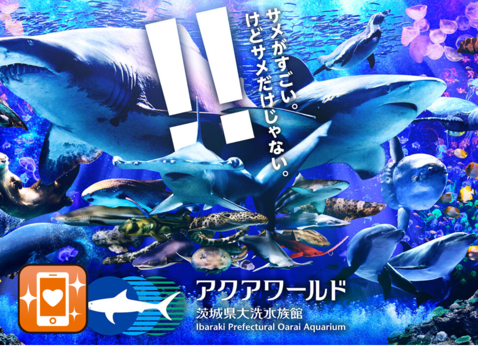 アクアワールド大洗水族館はサメの飼育種類数が日本最大級! 巨大なシロワニをはじめ、多種多様なサメたちが泳ぐ圧巻の大水槽は必見!まるで海の中にいるかのような臨場感を味わえます。