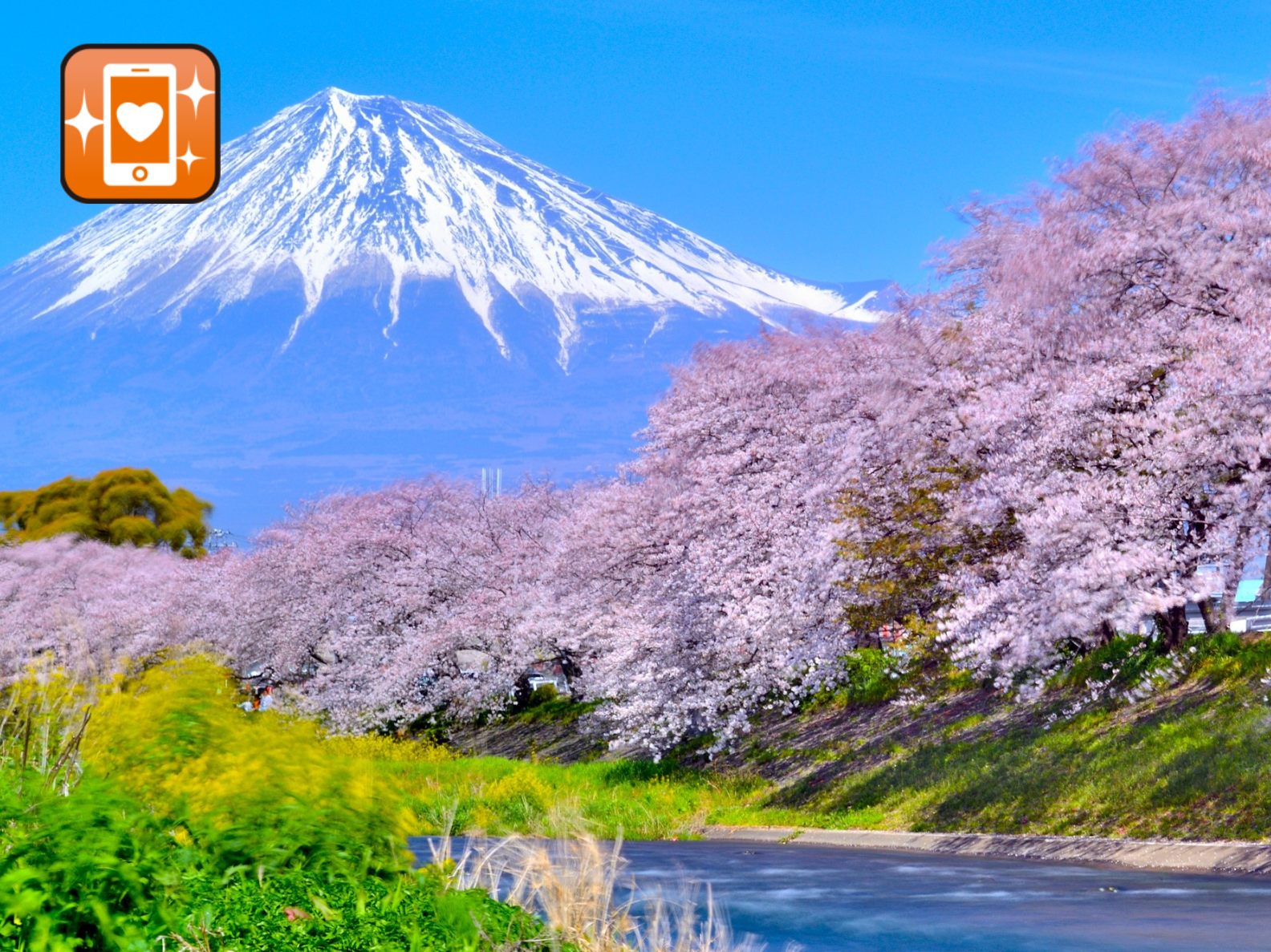 【アプリ対象ツアー】静岡県富士市の隠れた桜スポット「龍巌淵」で桜(ソメイヨシノ)観賞!これぞ日本の春!冠雪の富士山・潤井川の清流・桜が三位一体となった景色は息を呑むほどの美しさ!