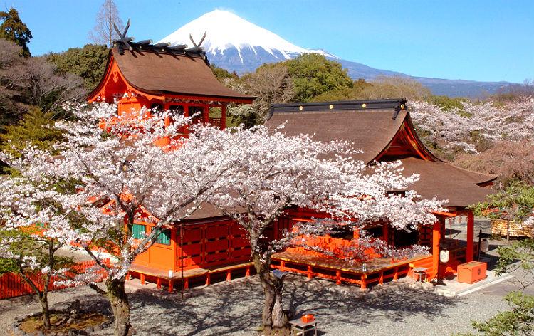 「富士山-信仰の対象と芸術の源泉」の構成資産の1つとして世界文化遺産に登録されています。木花という御神名から桜が御神木とされています。境内には500本もの桜樹が奉納されており、3月下旬~4月上旬には桜の見頃を迎え、訪れる人の心を惹きつけます。
