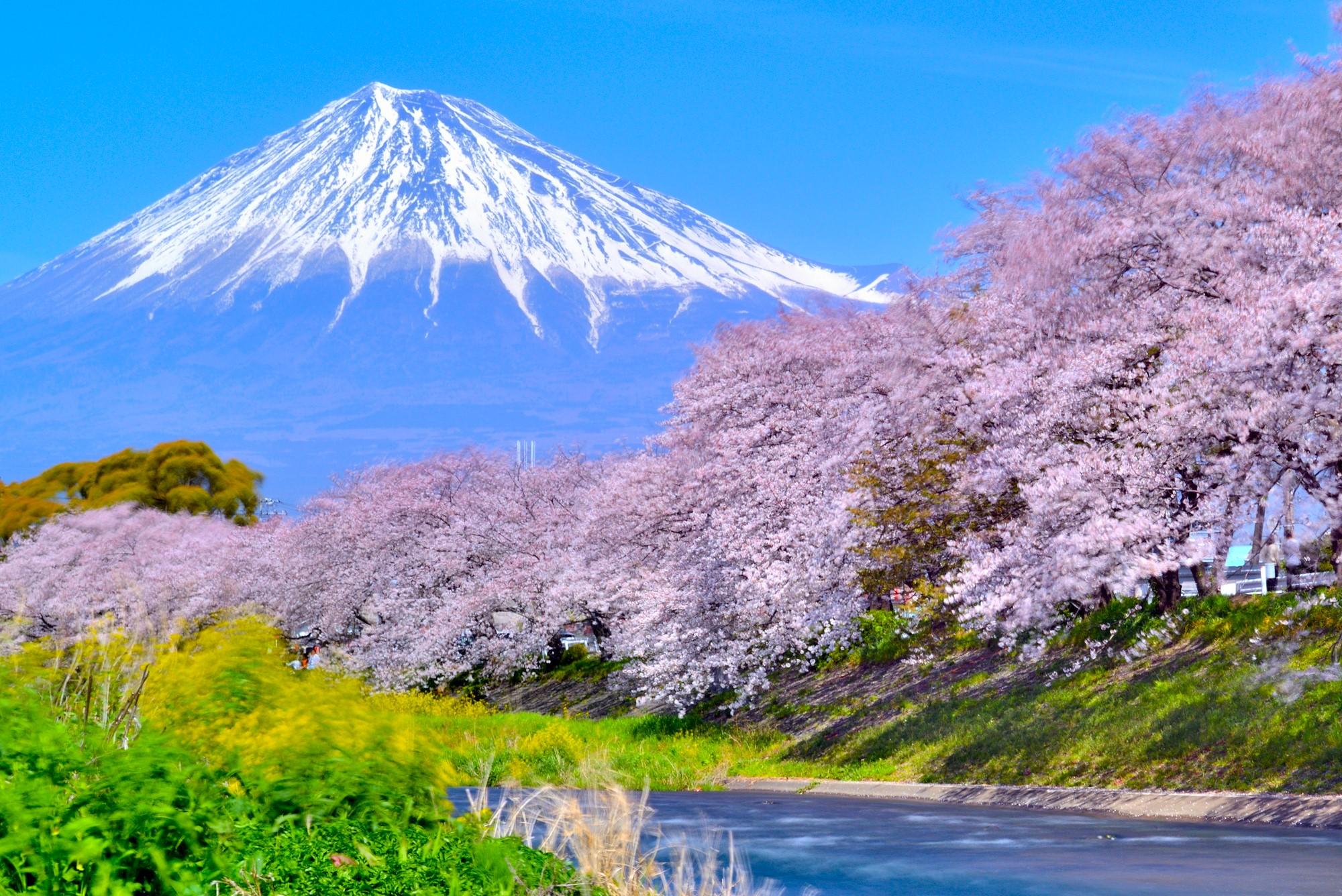 ●これぞ日本の春!冠雪の富士山・潤井川の清流・桜が三位一体となった景色は息を呑むほどの美しさ!【桜見頃3月下旬~4月上旬】
