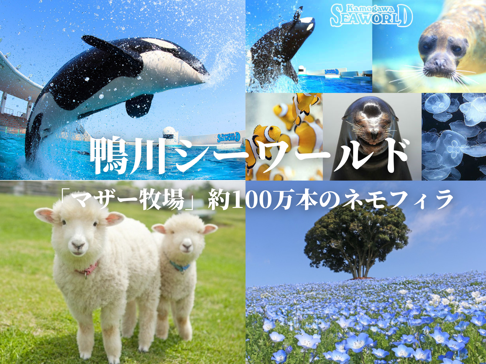 春の房総2大テーマパーク大満喫♪癒しのふれあい王国「マザー牧場」と水色に彩る約100万本のネモフィラ&海の世界との出会い「鴨川シーワールド」