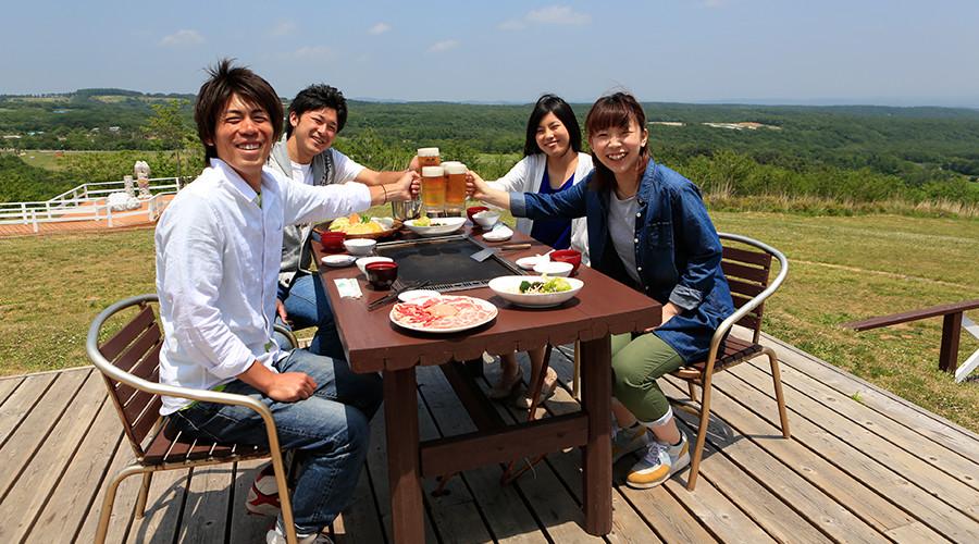 緑豊かな那須高原の空気の中、屋根付きのBBQスペースでゆったりと食べ放題ランチ!ジュージューと焼ける音と香ばしい匂いが食欲をそそります。
