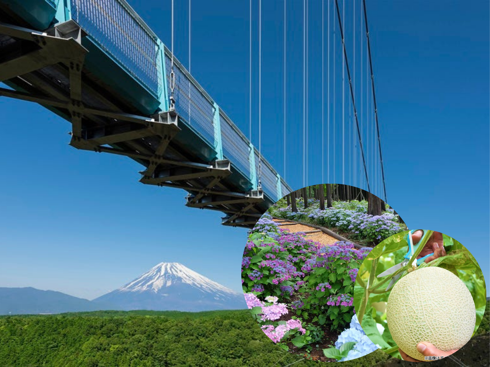 【ハピ旅】~あじさい13,000株が彩る初夏の絶景散歩~日本最長!富士を望む天空の大吊橋「三島スカイウォーク」とマスクメロン1玉狩り
