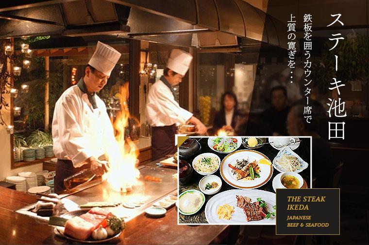 【平日出発】ゆったりとした時間が流れる大人の空間「ステーキ池田」で、上質のくつろぎを。 国産牛サーロイン、伊豆の名産金目鯛などこだわりの食材を鉄板焼きでご用意いたしました。 鉄板カウンター席で舌鼓を打ちながら、目の前でシェフが織りなす熟練技をお楽しみください♪(20名様限定)