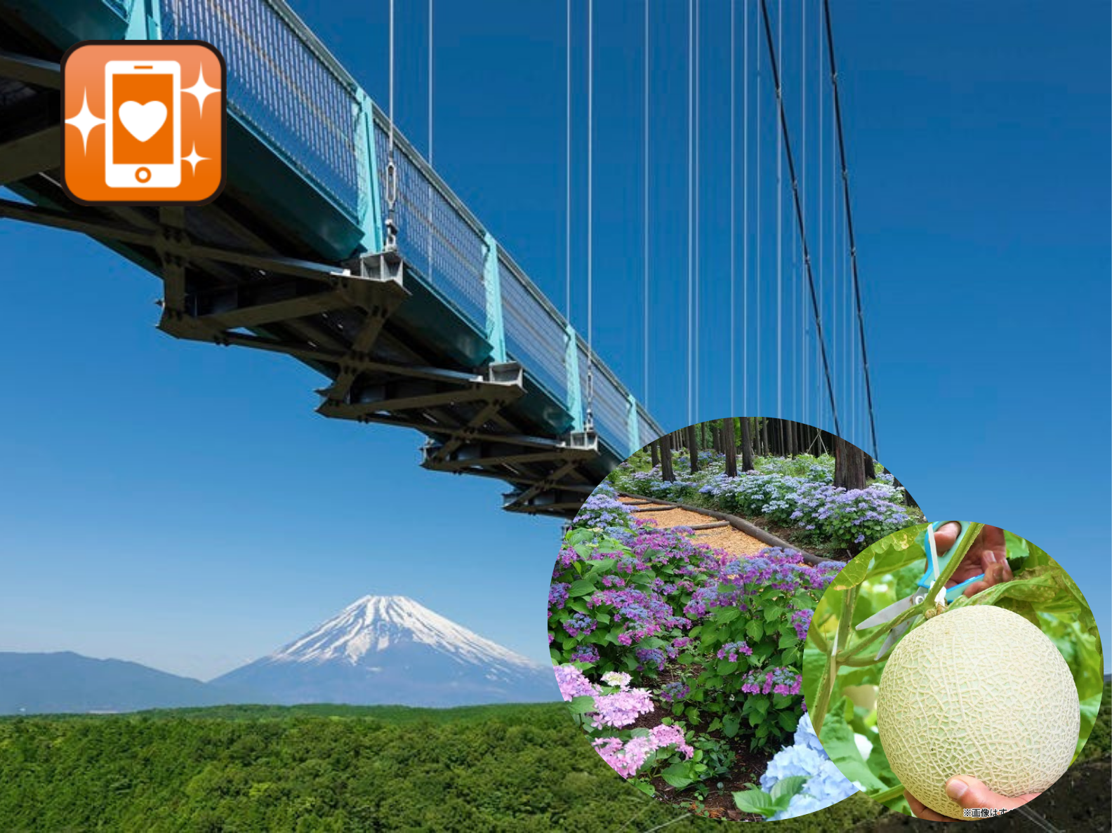 ~あじさい13,000株が彩る初夏の絶景散歩~日本最長!富士を望む天空の大吊橋「三島スカイウォーク」とマスクメロン1玉狩り