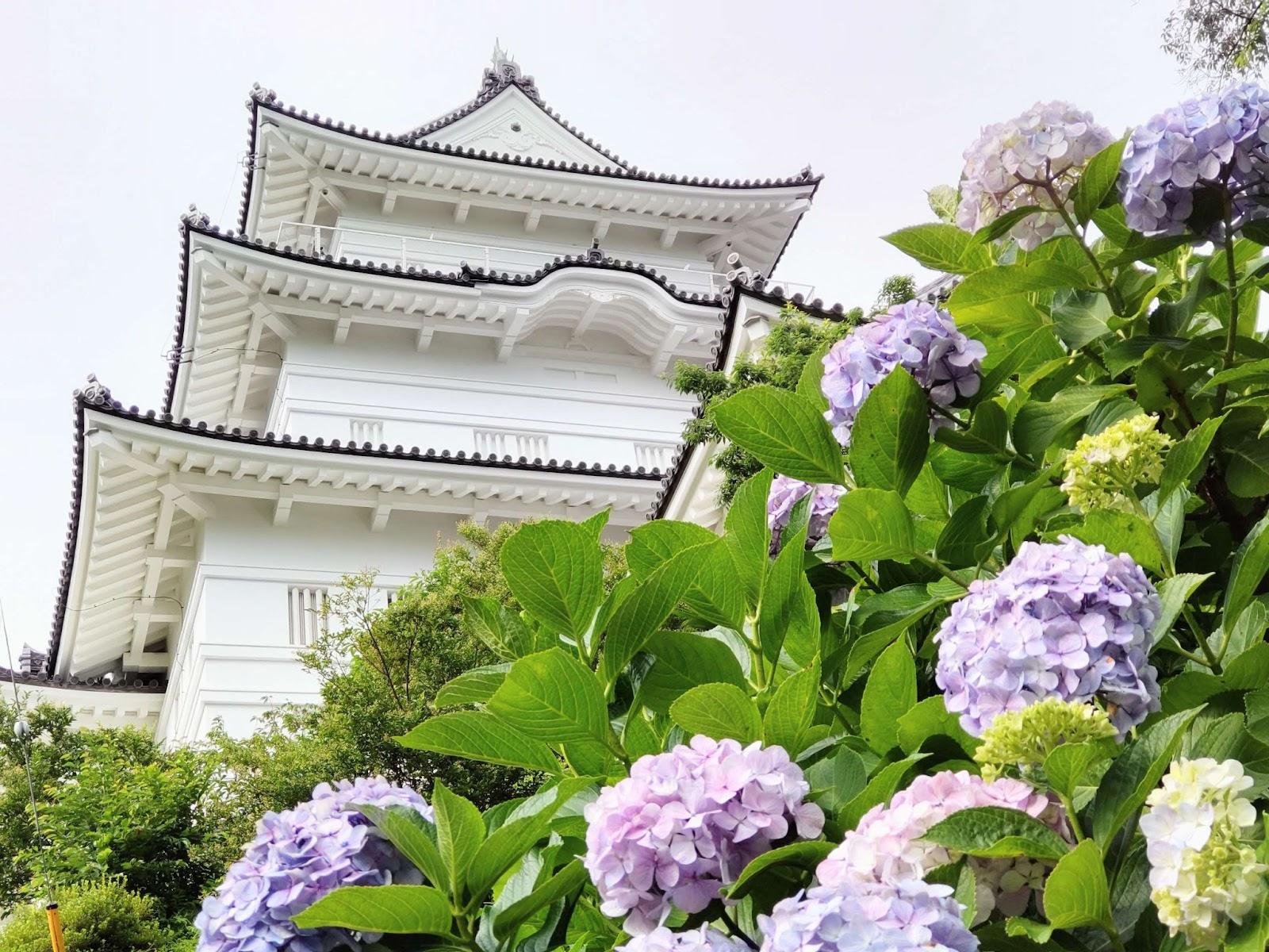 小田原城址公園は5月下旬~6月下旬頃には約2500株のあじさいを見ることができるスポットです!同じく5月下旬から約10,000株の花菖蒲が咲き始めます!