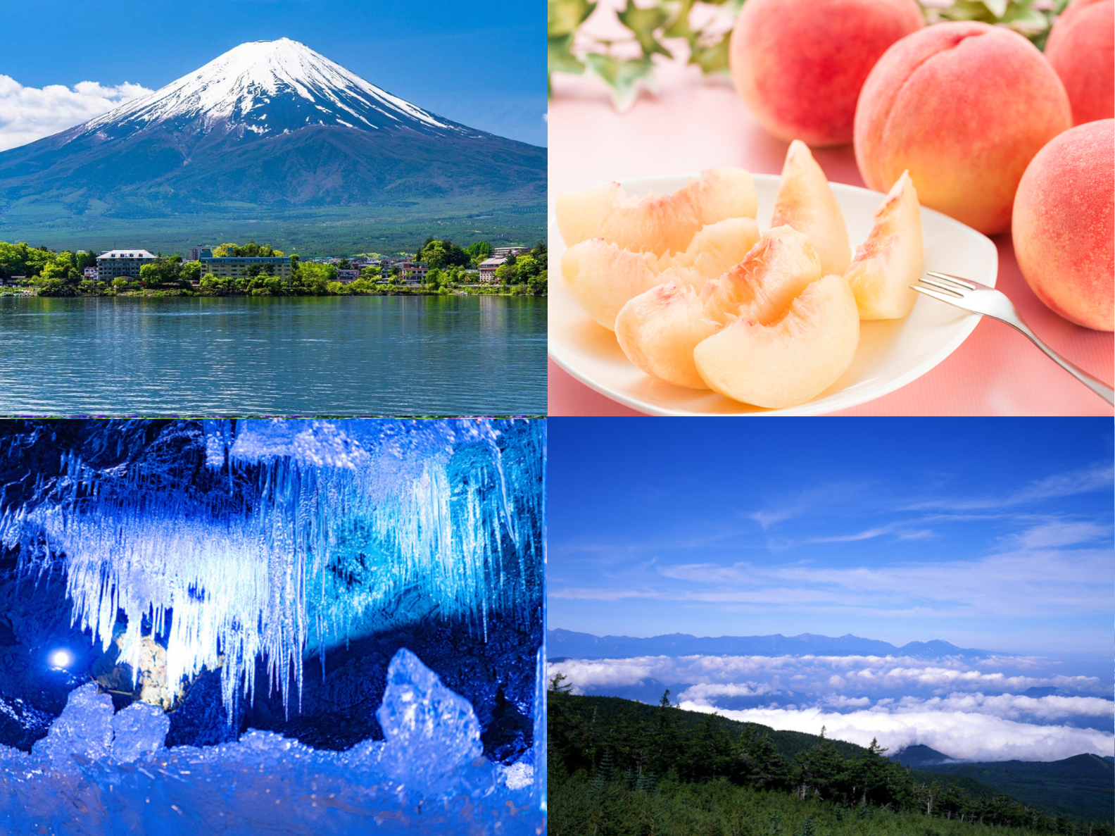 ひんやり天然クーラー♪神秘的な氷の洞窟探検と絶景の空に出会う「富士山五合目」&フルーツ王国やまなし季節のフルーツ狩り食べ放題