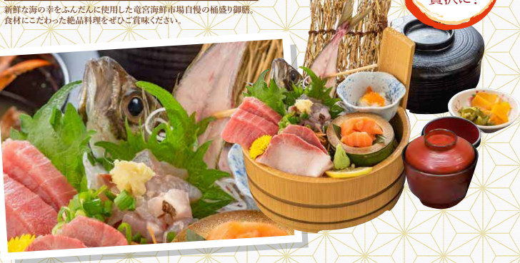 まずは豪快!沼津「竜宮海鮮市場」で桶盛り海鮮御膳