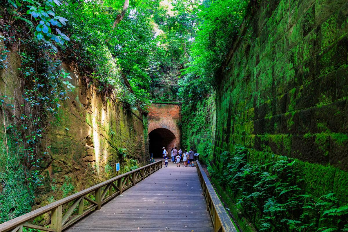 自然豊かな緑に包まれたレンガ造りの要塞跡や砲台跡、長いトンネルなど、まるで“天空の城ラピュタ”の世界に迷い込んだかのような景観が広がります。