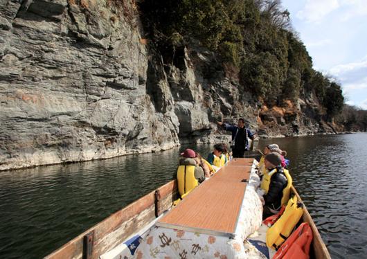 ●冬だけの贅沢体験!こたつ舟でぬくぬく絶景遊覧 和舟にこたつを載せた“冬の名物・こたつ舟”に乗って、長瀞の岩畳周辺をゆったり遊覧。