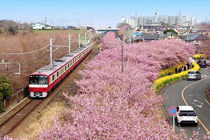 ●三浦海岸駅から小松ヶ池公園にかけて、約1,000本の美しい河津桜の約1kmの並木道で桜散歩!一足先に春を感じに出掛けてみませんか?