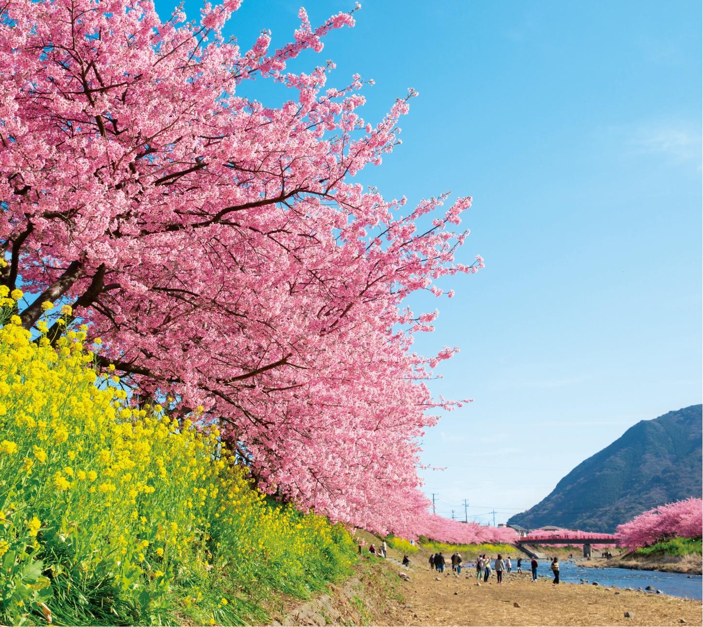 ●河津川沿いに約3キロに渡って桜並木が続く河津桜を観賞!満開時は黄色い菜の花とピンク色の桜のコントラストが、絵画のような美しい風景を作り上げます。【河津桜まつり】2024年2月1日~2月29日