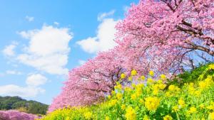 ピンク×菜の花×青空のコントラストがSNS映え抜群!