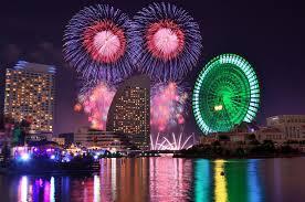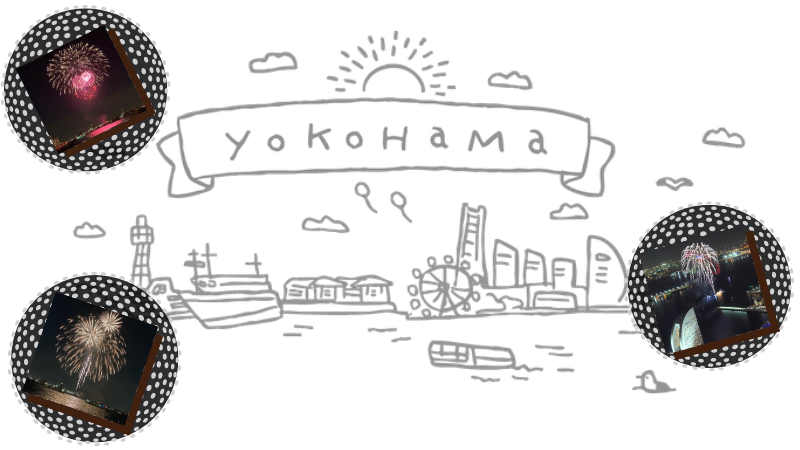 みなとみらいの高層ビル群、赤レンガ倉庫、大さん橋周辺のライトアップと花火が同時に楽しめます♪