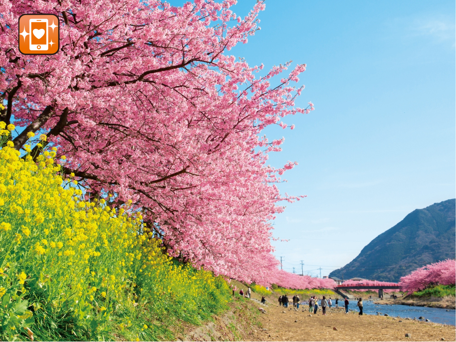 ●河津川沿いに約3キロに渡って桜並木が続く河津桜を観賞!満開時は黄色い菜の花とピンク色の桜のコントラストが、絵画のような美しい風景を作り上げます。【河津桜まつり】2024年2月1日~2月29日