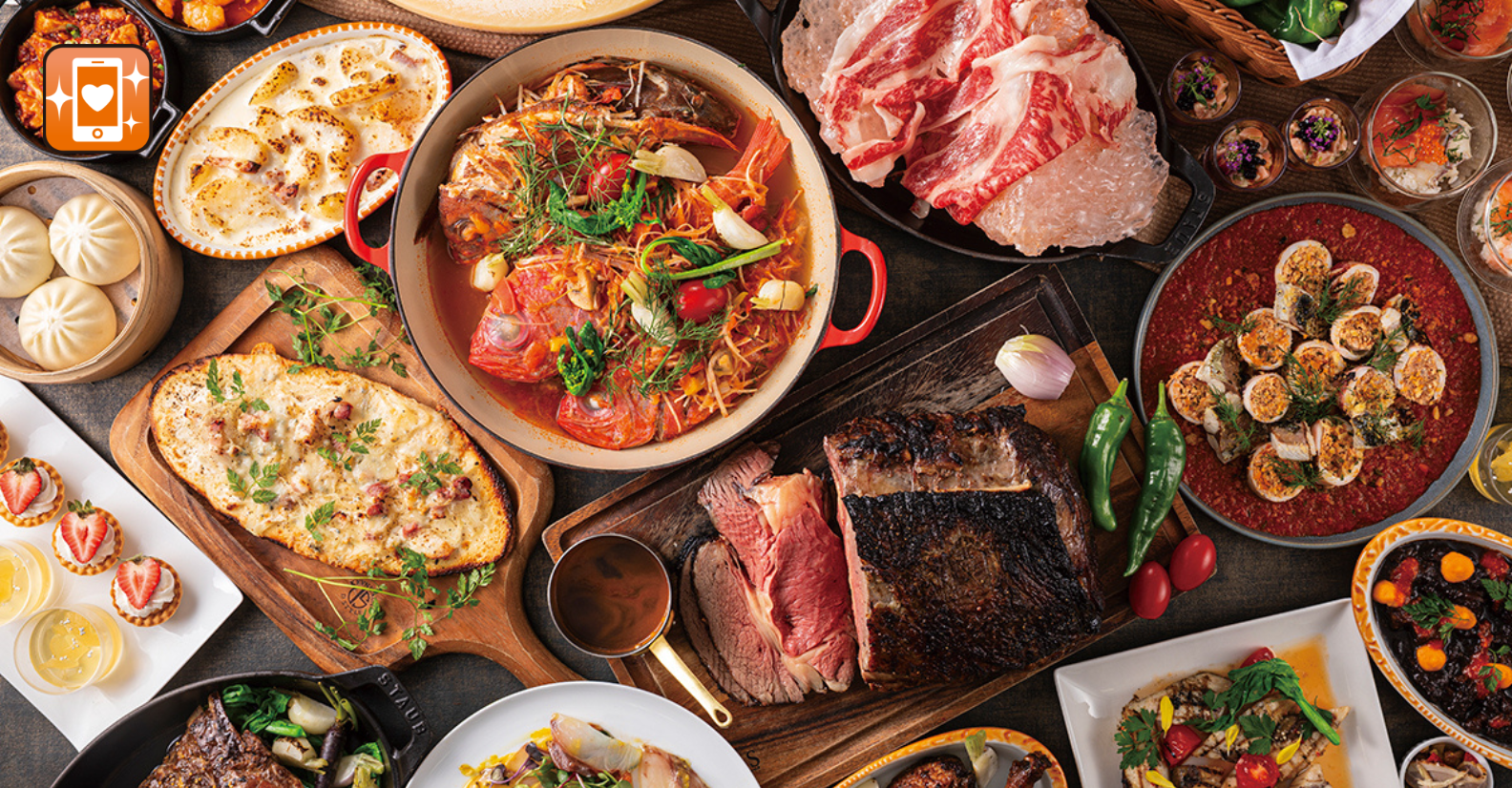 出来立ての点心や海老チリ、ローストビーフ、旬の食材を使った料理、彩り豊かなスイーツまで多彩なメニューが並ぶバイキングは、まさに“食のテーマパーク”です。※季節により内容が異なります。
