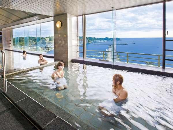 南房総勝浦の景色を満喫する展望大浴場は、健康増進と、肌に優しい温泉を利用しております。