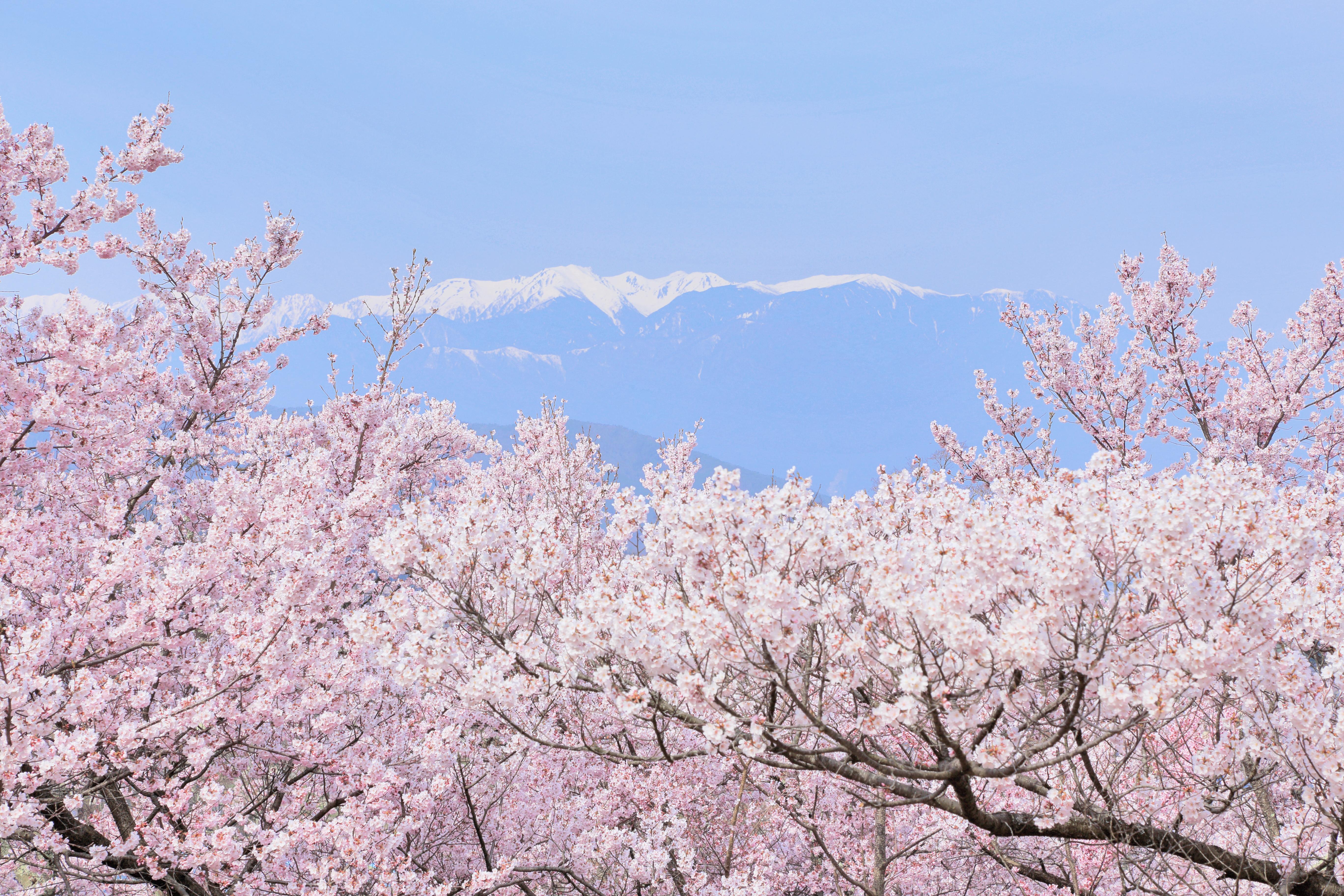 「天下第一の桜」と称され、日本三台桜の名所でもある高遠城址公園の桜。固有主タカトオコヒガンザクラを楽しむことができる。花はやや小ぶりで赤みが強く、樹齢140年を越える古木を含め約1500本が咲き誇る。