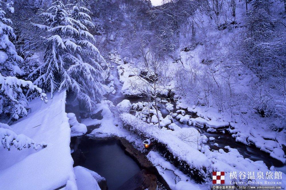 ●信州蓼科の秘境・横谷渓谷の懐にある、天然温泉と自然をご堪能いただける一軒宿[横谷温泉旅館]に宿泊。雪景色を望みながらの黄金色の巨石露天風呂もお楽しみ!