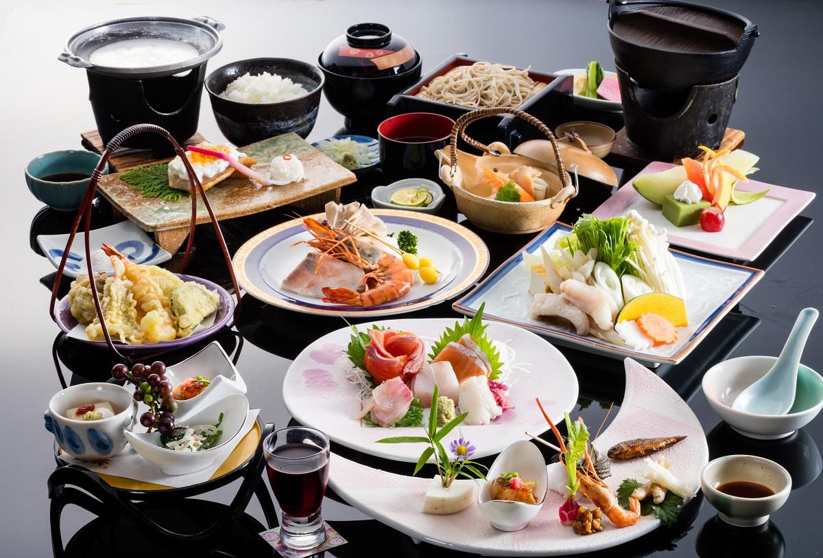 ●夕食はフリードリンク。飲み放題!季節にあわせて地元の食材を使った会席料理をお楽しみください。その時期に一番おいしい旬の食材を厳選してお届けします。