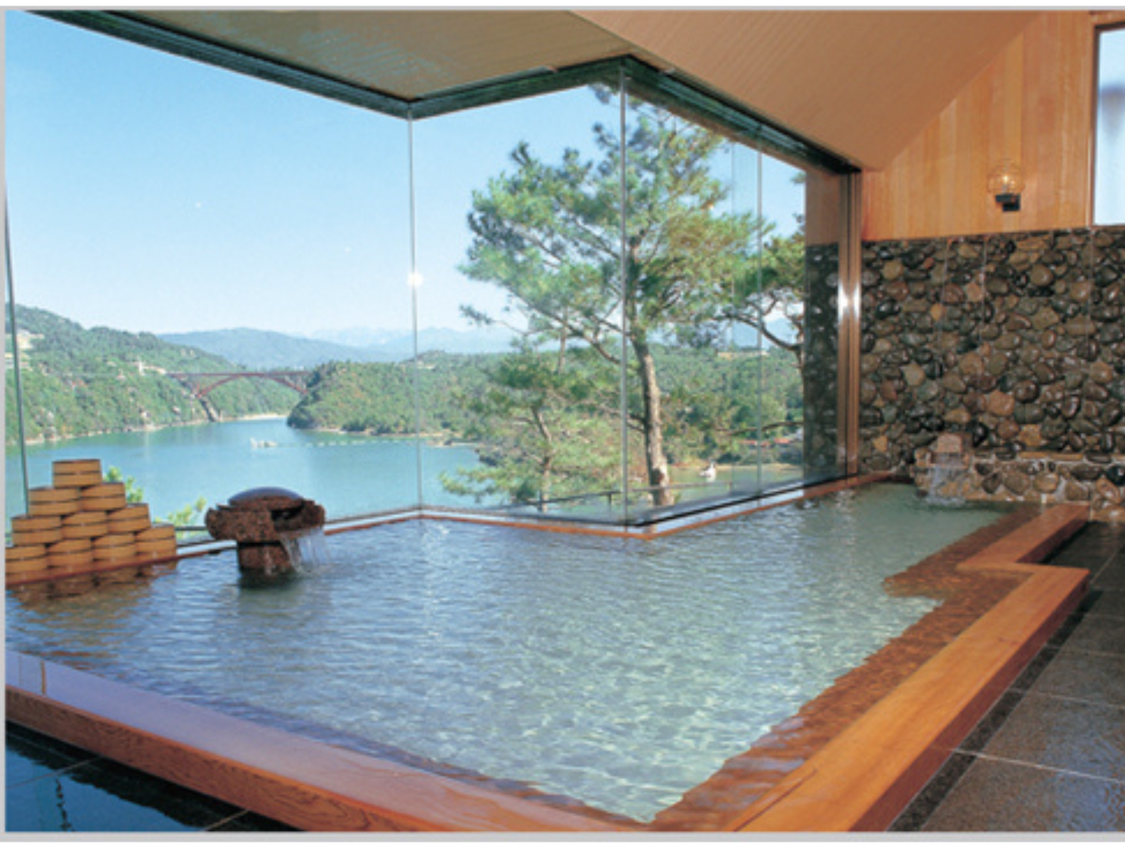 恵那峡を一望できる解放感のあるしょっぱい露天風呂そして保温効果の優れた源泉で檜を使ったリラックスできる内風呂。恵那峡の絶景とともに日々の疲れを癒してください。
