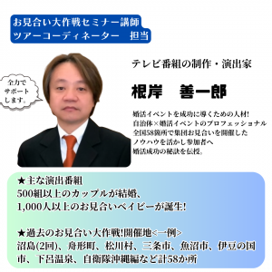 ●婚活のプロが安心サポート! 「お見合い大作戦!」でもおなじみの根岸善一郎氏によるセミナー&面談つき。第一印象の作り方や会話のコツを学びながら、ツアー婚ダクターが3日間しっかりサポートしてくれるので、初めての方でも安心して参加できます。