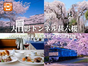 まるで滝のように咲き誇る「慈雲寺イトザクラ」&鉄道遺産「大日影トンネル」と約600本の桜並木「甚六桜」&ワインと本格フレンチレストラン「鳥居平」