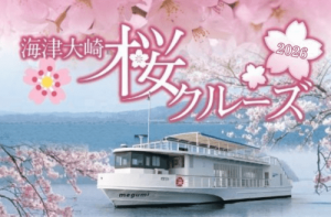 桜色に染まる湖西!海津大崎お花見クルーズで優雅に船上からと上陸で見学&圧巻6㎞桜並木「風車街道」と神秘なる絶景「白髭神社」