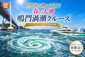 【アプリ対象ツアー】この日は大潮の日!20m級の大渦が見れるチャンス!昼食は鳴門海峡を目の前に臨むシーサイドホテルで人気の鯛丸御膳