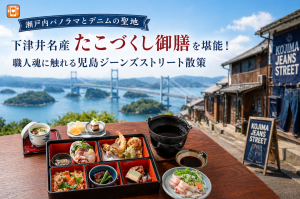 【瀬戸内パノラマとデニムの聖地】下津井名産「たこづくし御膳」を堪能!職人魂に触れる児島ジーンズストリート散策